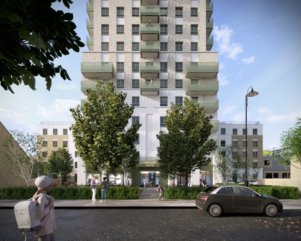 Redevelopment of an east London 1960s tower with structural failings to create 145 affordable homes in a 23 storey building and mansion blocks.