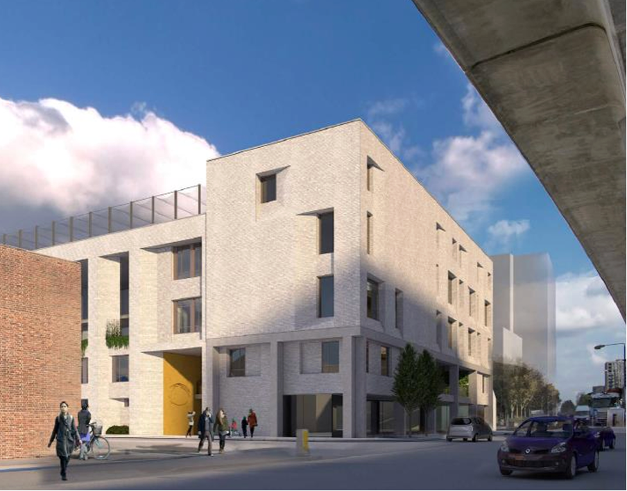 Planning application on former fire station site for a five storey new 4FE secondary school, with highway works, cycle parking and landscaping.